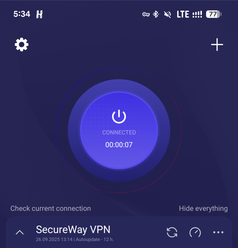 4. Готово, подключайтесь! Кнопка подключения в приложении в верхней части экрана по центру.